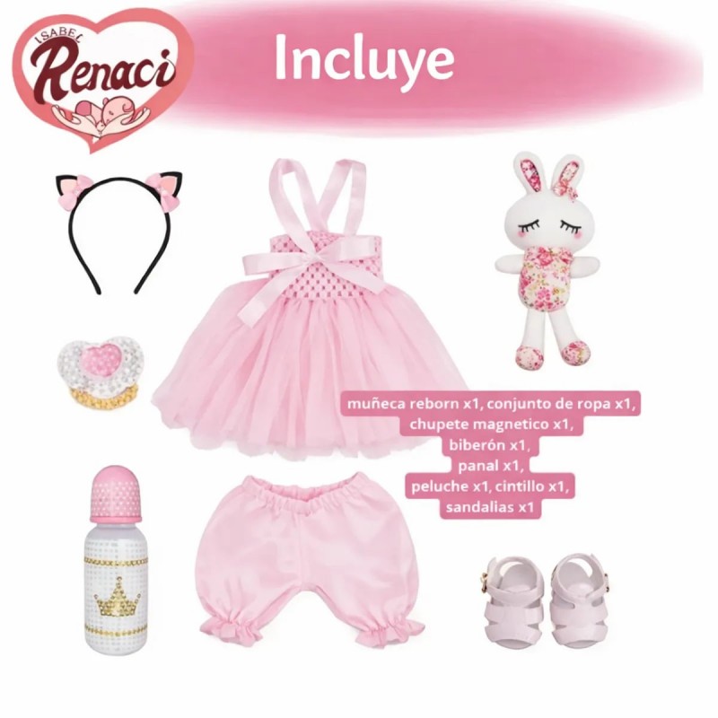 Material: vinilo de silicona de cuerpo completo (brazos, piernas, manos, pies). Muñecas de princesa de pelo largo, conjunto de ropa rosa, muñeca de bebé RebornMUÑECA REALISTA DE RECIÉN NACIDO - Una muñeca de bebé realista de vinilo de silicona completa que es perfecta para la hora del baño. cara suave y tierna con ojos realistas y dedos de los pies irresistiblemente lindos, dedos y dedos de los pies arrugados, detalles pintados a mano y pestañas aplicadas a mano. Parece una bebé realEl mejor juguete de compañía: muñecas realistas para bebés, qué lindo es cuando vemos a un niño cuidar a su muñeca de bebé Las muñecas tienen un gran efecto en el desarrollo de un niño, los niños pueden aprender a asumir responsabilidades, cuidar a los demás y cultivar relaciones cercanas y amor. Cuidado y atención especial para que un niño pueda desarrollar habilidades sociales mientras participa en la diversión del juego de simulaciónJuego de accesorios de moda para muñecas y ropa: muñecas bebé reborn lavables de aspecto realista, accesorios para el cabello de niña, vestido de encaje rosa, sandalias blancas, juguete de peluche de conejo suave, cambio de pañales, biberón, chupete magnético, certificado de nacimientoMUÑECAS DE BEBÉ REBORN LAVABLES - la linda muñeca de bebé puede bañarse, los niños de 3 años o mayores pueden jugar de forma segura con la muñeca en el baño. Puede venir con cualquier ropa linda y hermosa. Los niños pueden llevarla a todas partes. La muñeca de bebé puede caber en ropa de bebé recién nacido (de 0 a 3 meses).LISTO PARA REGALAR - Las muñecas de bebé dulces son una gran opción para regalo de cumpleaños de niños, regalo de Navidad, actividad preescolar y en el hogar, juego de rol y juego de crianza. La muñeca Reborn también es una buena opción para acompañar a la abuela y para la colección de coleccionistas. Un regalo perfecto para coleccionistas de muñecas Reborn a partir de 3 años